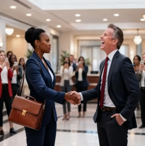 Quita tu sucia mano. No le doy la mano a basuras como tú. Se burló el gerente mientras dejaba con la mano estirada a la mujer negra, sin saber que ella tenía el control de 5.00 millones de la empresa. ¿Qué hace esa negra en mi sala de juntas? Respetó el gerente Robert Whitman, sin molestarse en bajar la voz.