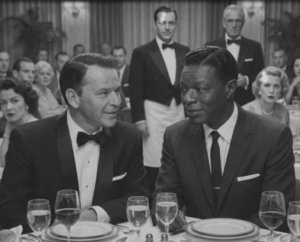 No era la mirada del cantante encantador, sino la del hombre que no aceptaba un no por respuesta. A su lado, Nat King Cole, siempre impecable con su traje de corte. perfecto y su sonrisa melancólica intentaba pasar desapercibido. Nat no era un provocador, era un hombre que prefería la paz al conflicto, acostumbrado a que su arte hablara por él, pero Sinatra tenía otros planes.