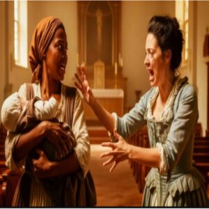 El caos estalló. La varonesa, sangrando sobre su vestido azul celeste, se giró y vio la pesadilla hecha realidad: la esclava de ojos verdes sostenía a su heredero, con un cuchillo ensangrentado en la otra mano. —¡Déjenme salir de aquí con el niño! —la voz de Yemayá resonó con una autoridad que silenció la capilla—. ¡O juro por todo lo que me quitaron que lo mataré aquí mismo!