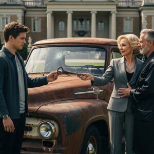 Esa misma tarde, Sarah recuperó la casa familiar y el control de las acciones. La camioneta, aquella reliquia oxidada, se quedó estacionada frente a la mansión como testigo silencioso de la justicia. Ya no era símbolo de miseria, sino de fortaleza.