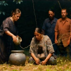La sentencia fue rápida. Ernestina sería desterrada, llevada lejos donde nadie conociera su pasado ni su vergüenza. Pero Doña Socorro, hurgando en los rincones más oscuros de su memoria ancestral, ideó un plan aún más terrible. Recordó un antiguo rito de purificación, un susurro transmitido por las mujeres de antaño para “limpiar” los linajes. No era una oración cristiana; era algo más viejo, algo que requiera tierra virgen y sombras profundas.