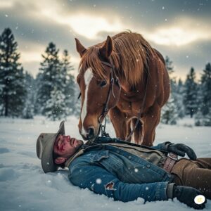 Roy estaba inconsciente, su pierna atrapada bajo el tronco y su cara pálida por el frío. Si Dakota no hubiera vuelto, habría muerto allí esa misma noche. La historia de su rescate no necesitaba palabras; el caballo había hecho lo imposible.