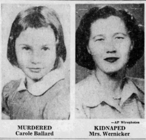 A los pocos días de partir Edwardsville, la pareja promulgó una brutal serie de crímenes que dejaron un rastro de muerte en tres estados. en el tarde del 30 de agosto de 1961, George Ballard, 47 años, y su hija Carol, 10 años, estaba pescando cerca El lago Emga, un pequeño estanque de pesca al oeste de Belleville, Illinois.