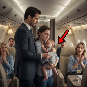 Me forcé a mirar por encima del respaldo del asiento. La escena se desarrollaba justo en la entrada de la primera clase, creando un molesto cuello de botella. Una mujer joven, quizás de unos treinta años, sostenía a un niño de unos cinco o seis años en brazos. El pequeño tenía el rostro pálido y sudoroso, y ella se veía totalmente exhausta. Su ropa era humilde y desgastada, una nota discordante en el lujoso entorno.