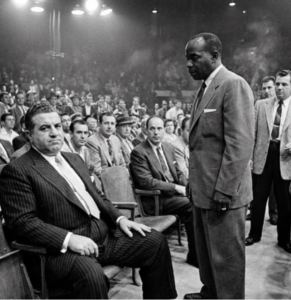 23 de octubre de 1959. 21:47 Madison Square Garden, el Lucha contra Sugar Ray Robinson. Todos los que Lo que importaba en Nueva York estaba allí. Políticos en los palcos VIP, celebridades en el ring y la mafia. Las cinco familias sentadas en sus secciones que muestran potencia, muestran presencia.Bumpy Johnson se sentó en tres filas detrás de Albert Anastasia, el Lord High Verdugo, el sicario más temido del mundo historia de la mafia. Ahora un jefe, poderoso, intocable, arrogante. Durante el sexto Ronda, Bumpy se levantó para tomar una copa. tenia pasar la ruta de Anastasia para llegar al pasillo. Bumpy dijo: “Disculpe”. Cortésmente, respetuosamente, tratando de pasar.