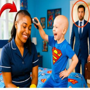 Richard Hail se quedó paralizado en el umbral. Ante él estaba su hijo de seis años, Benjamin, con la cabeza completamente desnuda por las semanas de quimioterapia, sosteniendo una maquinilla de afeitar eléctrica que aún zumbaba. Arrodillada a los pies del niño estaba la nueva empleada, Nina Moore. Sus apretados rizos oscuros estaban cortados de forma desigual, con mechones esparcidos por la alfombra.