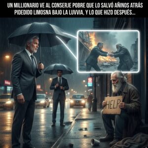 Médicos y enfermeras se giraron al ver a un hombre en un traje de diseñador empapado cargando a un viejo mendigo en sus brazos. Era una escena que nadie esperaba: un multimillonario empapado, con el rostro tenso por el pánico, sosteniendo a un hombre que la ciudad ya había desechado.