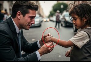 Al día siguiente, antes del amanecer, regresó al mismo cruce. La niña apareció poco después. “¿Puedo saber tu nombre?”, preguntó él, arrodillándose de nuevo. “Sofía”, respondió ella. Richard le preguntó por su madre. “Está enferma”, dijo la niña, desconfiada. “Necesito conocerla”, insistió él, “porque creo… creo que conocí a la dueña de esa pulsera”.