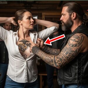 Entró como una tormenta. Chaqueta de cuero negro, manos con cicatrices y unos ojos que podían silenciar una habitación. El bar enmudeció cuando el motero golpeó su casco contra la barra. Pero nadie esperaba que, en solo cinco minutos, le arrancaría la camisa a una camarera delante de todos. Y lo que vio debajo haría que hasta los hombres más duros del lugar olvidaran cómo respirar.