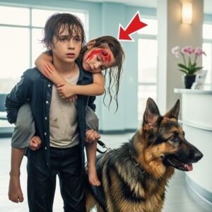 Tenía solo 5 años, su pequeño cuerpo temblaba en la fría noche cuando su hermano de 9 años la levantó en sus brazos. Su cabeza sangraba, su respiración era superficial. Pero él la llevó a través de la tormenta, paso tras paso, hasta que las brillantes letras rojas de la sala de emergencias finalmente aparecieron. A su lado corría Rex, su leal pastor alemán, ladrando pidiendo ayuda cuando su joven amo casi se derrumba en las puertas del hospital.