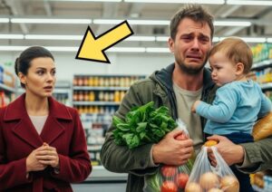 Lo que Marcos no sabía era que, justo detrás de él en la fila, una mujer observaba cada detalle de aquel momento devastador. Vestida de forma sencilla, con ropa que no llamaba la atención y una mirada que escondía profundos secretos, ella presenció el desespero de Marcos y reconoció algo familiar en ese dolor. Un dolor que ella misma había cargado durante años.