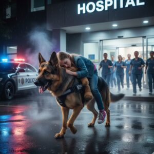 El hospital de emergencia, Sa Mercy General, era un lugar de caos controlado, hasta ese momento. Las puertas automáticas se abrieron de golpe chocando contra las paredes con un estruendo metálico que resonó en el vestíbulo pulido. En el umbral apareció una imagen que congeló el aliento de todos: un majestuoso Pastor Alemán irrumpió en solitario, llevando sobre su lomo a una niña pequeña y sangrando.