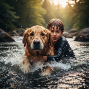 Pero nadie se movía. Todos estaban paralizados por la desesperación y el temor. Solo aquel perro parecía saber exactamente lo que debía hacer. Sus ojos, brillantes y fijos, seguían al niño como si pudieran leer su mente y sus miedos. Con cada ola que rompía sobre ellos, el perro se esforzaba aún más, utilizando su instinto para proteger al pequeño de los golpes de la corriente.