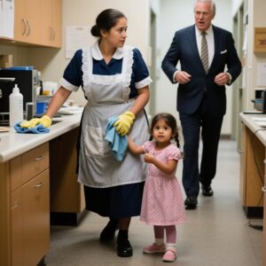 Una mujer que apenas lograba sostenerse con el sueldo de limpieza se vio obligada a llevar a su pequeña al trabajo. No sabía que aquel gesto, nacido de la necesidad, iba a provocar en su jefe millonario una reacción inesperada que cambiaría su destino.