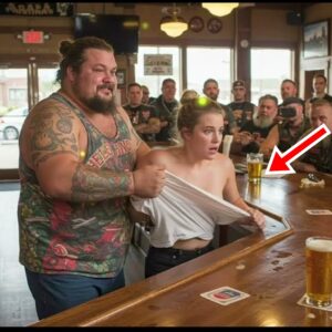 Todas las cabezas se giraron. La camarera, de apenas 21 años, temblando, con la camisa rota por un desconocido borracho, se quedó paralizada por el shock. Y entonces, antes de que nadie pudiera pestañear, una silla chirrió estridentemente por el suelo. Un hombre alto, cubierto de tatuajes, con una chaqueta de cuero marcada con “Hell’s Angels”, se levantó lentamente del reservado de la esquina.