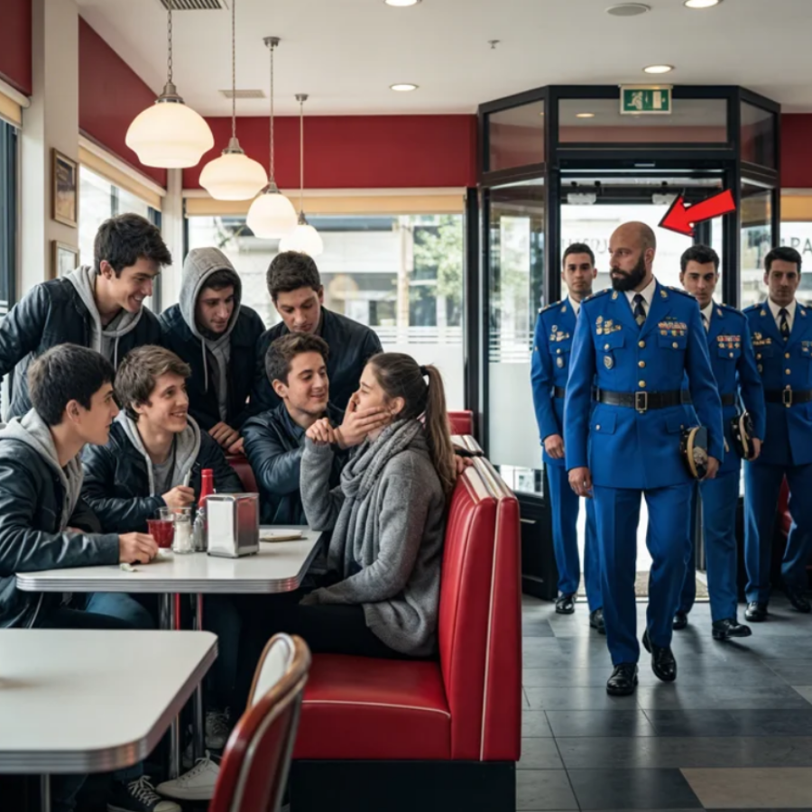 Ninguno de los clientes se atrevía a intervenir. Algunos grababan la escena con sus teléfonos. Los matones no habían notado a los tres militares uniformados que acababan de entrar. ¿No sabían que el coronel Carlos Mendoza, veterano condecorado de Afganistán, estaba viendo cómo humillaban a su hija, lo que ocurrió en los siguientes 5 minutos, transformó las risas en terror puro y enseñó a todos los presentes una lección inolvidable sobre la verdadera naturaleza de la fuerza y la debilidad.