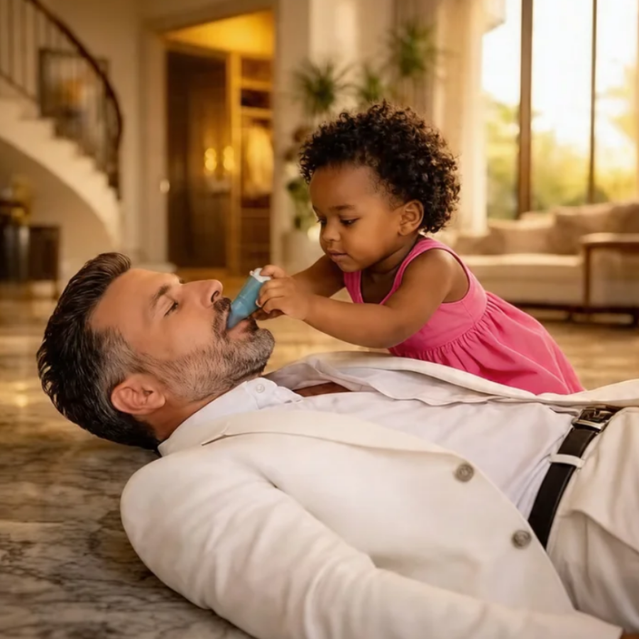Su inhalador estaba en el coche, sus guardaespaldas habían salido y la muerte lo miraba de frente. Fue entonces cuando una niña de 3 años apareció de la nada. Era Valentina, la hija de la empleada de limpieza, una niña de rizos oscuros que siempre lo miraba con curiosidad cuando él pasaba sin saludar.