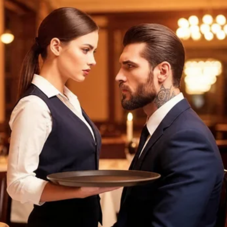 Cargó la bandeja con los vasos de agua, con las manos más firmes de lo que se sentía. El comedor privado estaba al final del pasillo trasero pasando la bodega en el rincón más tranquilo del restaurante. Había servido allí dos veces antes. Una para la cena de aniversario de una empresa de Wall Street, otra para un acuerdo inmobiliario que incluyó demasiado whisky y demasiadas amenazas apenas disfrazadas de bromas.