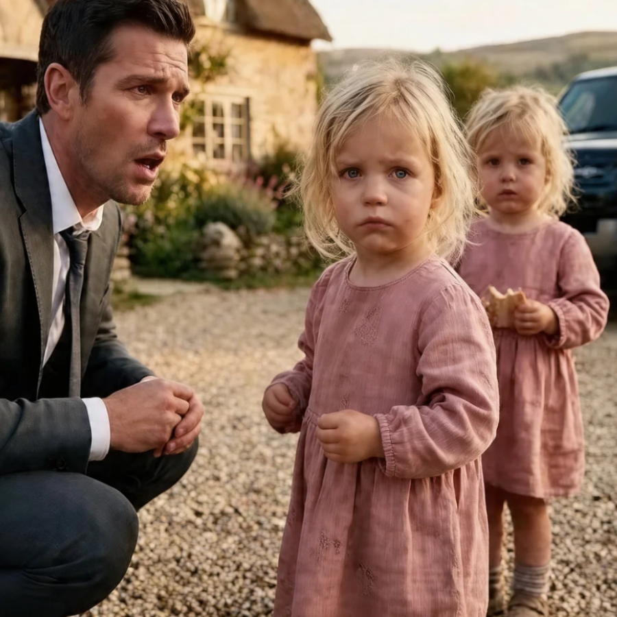 bajó del vehículo respirando el aire puro que olía a tierra mojada y a leña. Y fue justo en ese instante cuando sus ojos se toparon con la escena más inverosímil que pudo haber imaginado. Allí, frente a la entrada de la casa de campo, estaban las dos niñas. Eran tan pequeñas que apenas llegaban a la altura de su cintura.