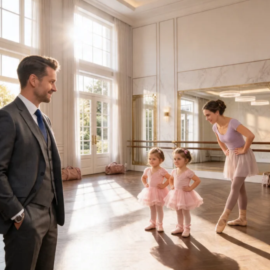 La pesada puerta de roble del estudio de baile en el centro de Chicago crujió ligeramente cuando James la abrió. Sus zapatos de cuero pulido resonaban rítmicamente contra el suelo de madera encerada. Había salido de la oficina temprano por primera vez en 2 años, impulsado por una extraña intuición y el soplo de una vecina descontenta.
