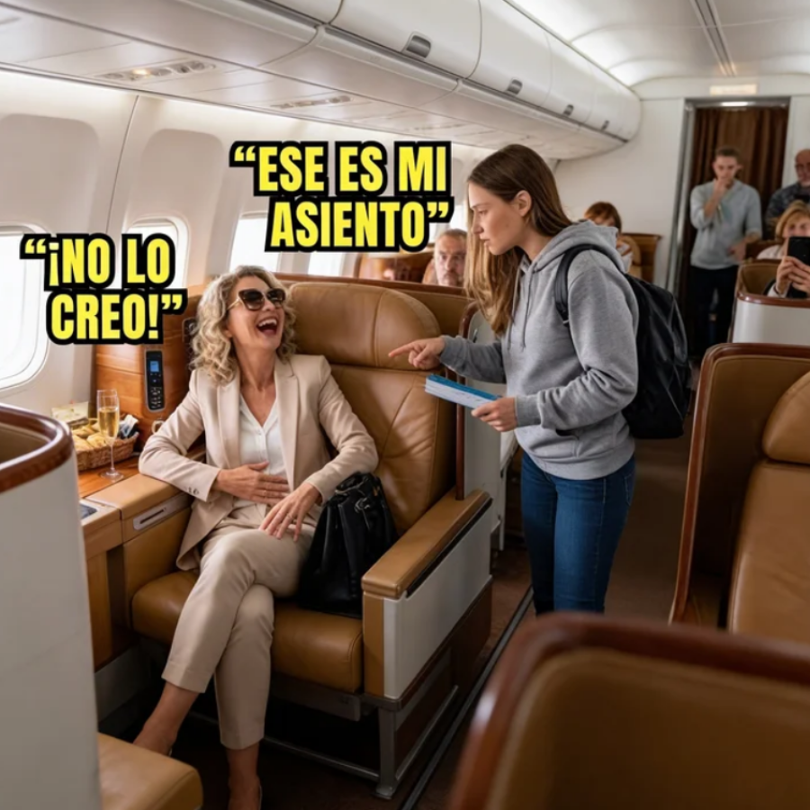 Elena llegó a su asiento junto a la ventana, pero lo encontró ocupado por Victoria Mendoza, una socialit de 55 años con traje beige, gafas oscuras y bolso de diseño. Victoria champán y reía ignorando el boarding pass que Elena le mostraba. “Disculpe, ese es mi asiento”, dijo Elena calmada. Victoria la escaneó con desprecio.