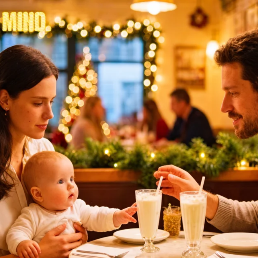 Él preguntó, “Espera, ¿se supone que vas a encontrarte con alguien aquí esta noche? Una cita a ciegas. El rostro de Ruby pasó de rojo a blanco en unos dos segundos. Ella lo miró fijamente y susurró, “Ithan.” Él asintió y dijo, “Ruby.” Y ambos se quedaron allí, en medio de aquel elegante restaurante con un bebé gritando, un gerente furioso y unas 60 personas observando como si fuera una cena espectáculo.