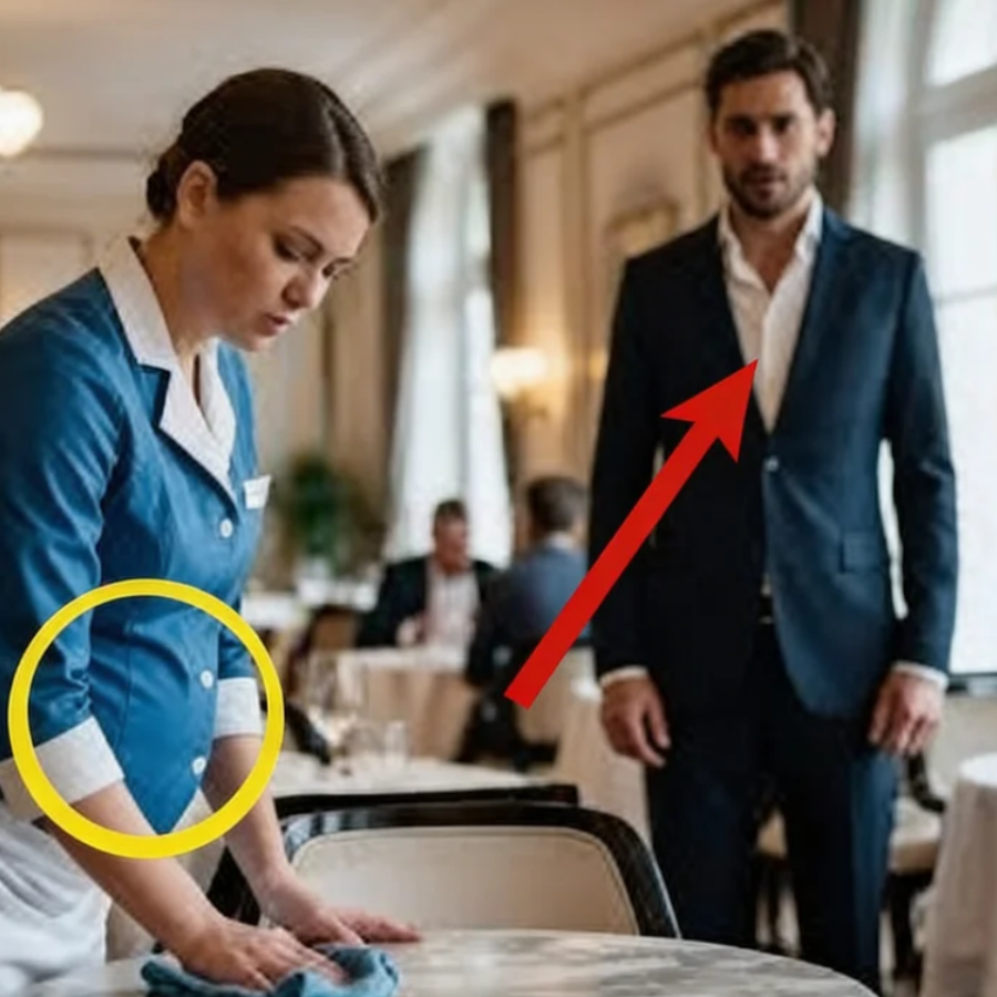 Todo el ruido del lujoso restaurante, el tintineo de las copas de cristal de bohemia y las risas contenidas de la élite local se transformaron en un zumbido sordo y lejano en sus oídos. Renata se detuvo un segundo, soltó el trapo sobre la madera y se llevó instintivamente una mano a la parte baja de la espalda, arqueándose con una expresión de dolor que parecía quebrar su espíritu.