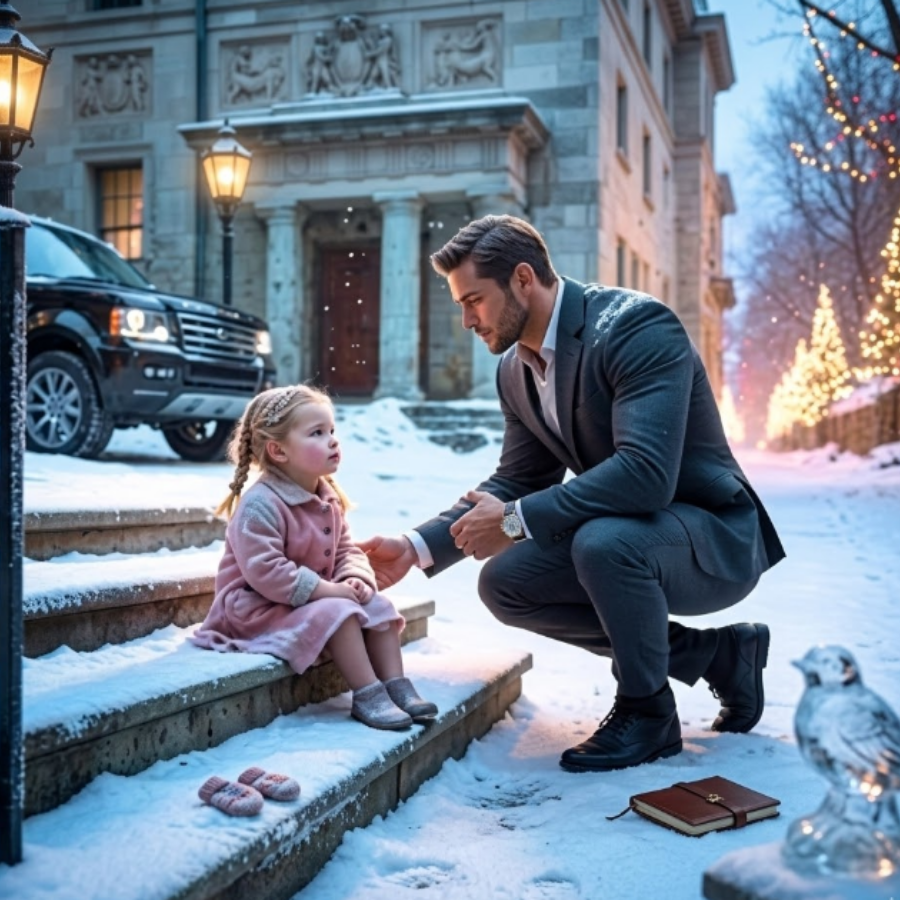 Entonces sus faros captaron algo. Una figura pequeña a una currucada en las escaleras frenó fuerte. Los neumáticos chirriaron contra el aguave congelado. Damián abrió la puerta de golpe y salió al viento cortante, sus zapatos crujiendo la nieve mientras corría hacia adelante. Allí, en las escaleras del orfanato, estaba sentada una niña pequeña, no más de 6 años.