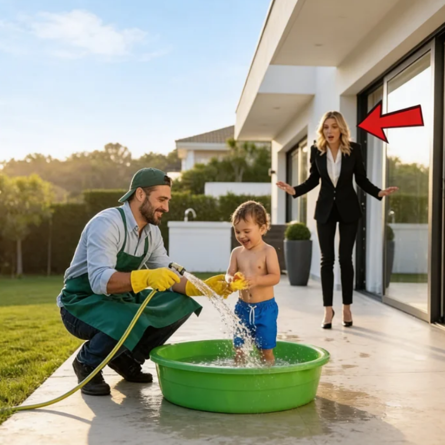 Se detiene detrás del seto perfectamente cuidado y lo que ve la deja completamente sin palabras. Diego Morales, 32 años, el conserje que había contratado apenas un mes antes, está jugando a salpicarse con agua en una piscina hinchable con su hijo Pablo, de 3 años. El niño ríe como no lo había hecho desde que la esposa de Carmen murió hace 2 años.
