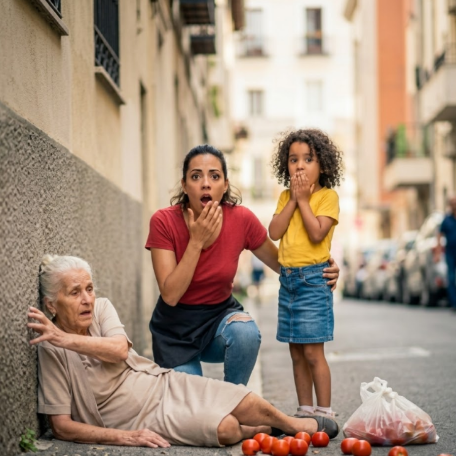 Marisol dejó caer la bolsa sin pensarlo dos veces. Los tomates rodaron por el pavimento mientras ella se arrodillaba junto a la mujer desconocida. “Señora, ¿me escucha? Ayuda, alguien llame a una ambulancia”, gritó su voz temblorosa pero firme, mientras revisaba si la anciana respiraba. En ese instante el mundo pareció detenerse.