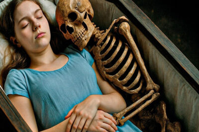 durante el funeral, cuando colocan el esqueleto junto al cuerpo de la joven, su padre nota un detalle impactante que
