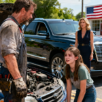 Mocked Single Dad Mechanic Helps Crying Girl — Next Day Billionaire Mom Calls Him ! The sound of laughter cut…